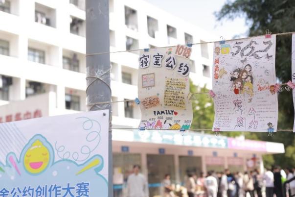 宿舍公约的创作过程经过宿舍全体成员的热烈讨论,每一项条款都凝聚着舍友们对于和谐宿舍生活的期待,这些元素的加入,不仅让公约更加鲜活和立体,也让人们看到了宿舍成员之间的深厚情谊和共同追求。比赛过程中,创意精彩纷呈,有的宿舍以充满趣味的图文形式呈现公约,可爱的插画搭配简洁话语,让公约充满活力;有的则用简洁明了的语言突出重点,一目了然。本次活动的展览不仅通过线下的评比还开展了线上的投票活动,得到了全校师生的广泛关注和积极参与。