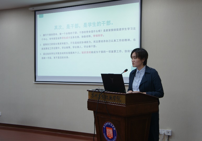 紧接着,年级组组长李嫚嫚老师上台发言。李老师主要围绕大一学生的成长方向进行了深入剖析,她指出,心理与身体健康是学生成长的重要基石,希望同学们能够关注自身身心健康,树立正确的三观,明确未来的发展方向。同时,李老师也鼓励同学们积极参与学生会工作,锻炼自己的综合能力,为学院的发展贡献自己的力量。