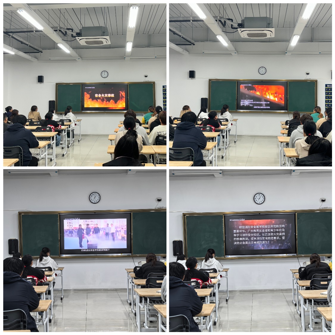 学院组织同学们观看校园消防安全警示片。影片中一幕幕因疏忽导致的火灾事故场景触目惊心,校园内违规使用电器、随意丢弃烟头、堵塞消防通道等行为所引发的严重后果,让同学们深受震撼。这些真实的案例成为最有力的教材,警示大家要时刻保持警惕,严格遵守校园消防安全规定,杜绝任何可能引发火灾的行为。观看结束后,同学们纷纷表示,一定要将消防安全意识融入到日常的学习、生活和工作中。
