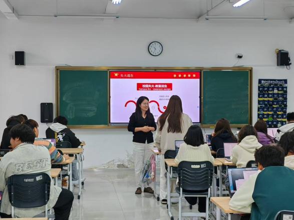 辅导员们通过主题班会深入讲解消防知识。从日常生活中的安全用电常识,到常见火灾的引发原因,再到消防设施的正确使用方法以及火灾报警的详细步骤,讲解过程紧密结合实际案例,生动形象,易于理解。同学们认真聆听,不时提问互动,学习氛围浓厚。