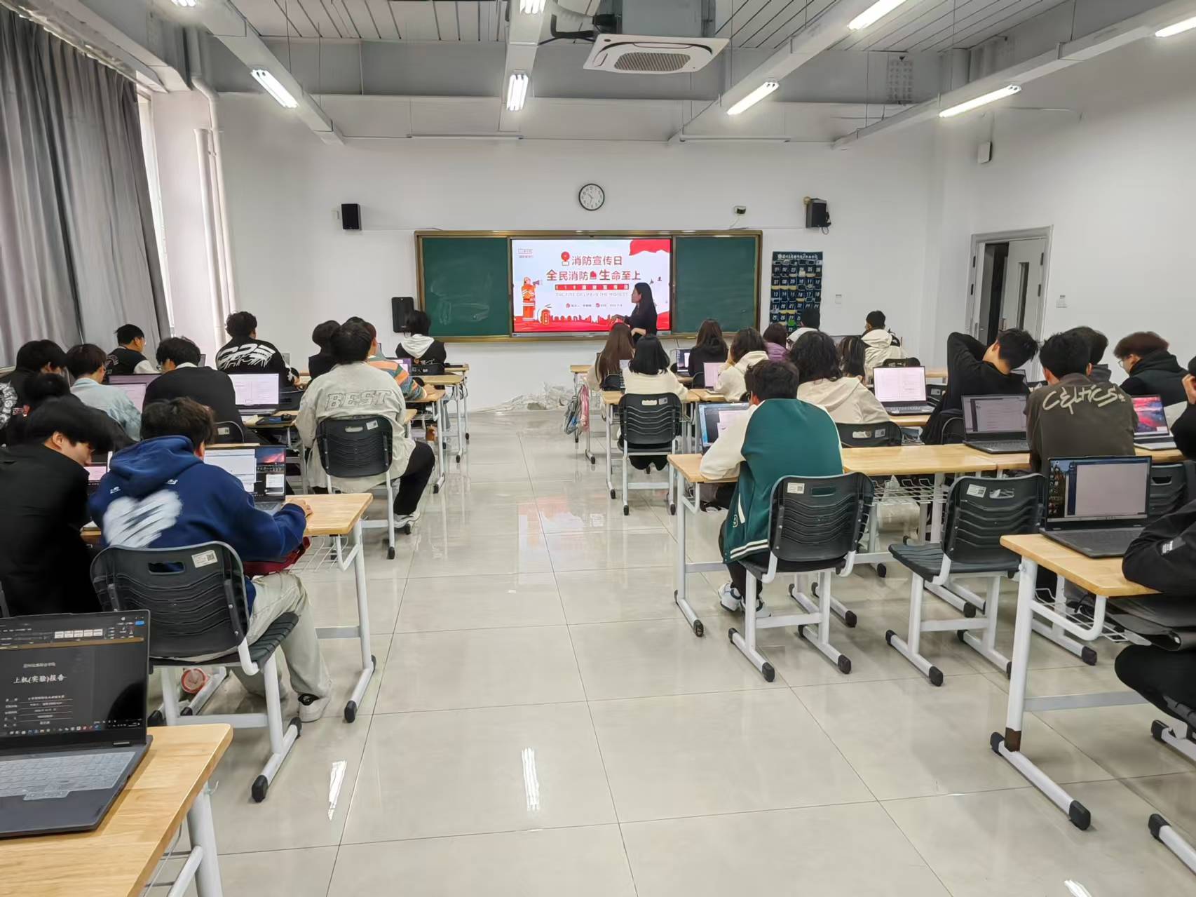 学院精心播放了一系列消防宣传视频,那些触目惊心的火灾案例、英勇无畏的消防英雄事迹以及实用的火灾逃生技巧,瞬间抓住了同学们的注意力,让大家深刻意识到消防工作的重要性与紧迫性。