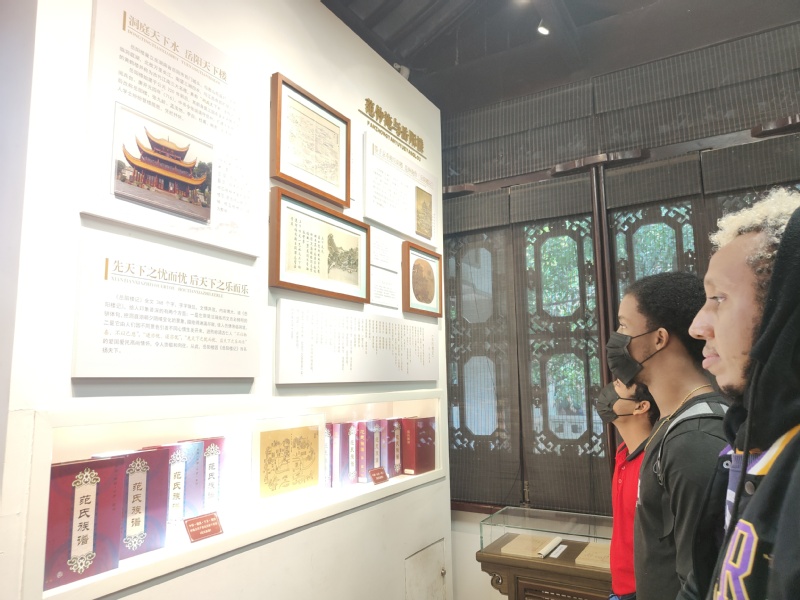 留学生们首先参观了位于天平山南麓的范仲淹纪念馆。国际学院吴童老师向留学生们介绍了范仲淹的家庭背景、生平事迹、历史名作和社会影响,留学生们边听边看,对这位中国历史名人忧国忧民、矢志不渝的家国情怀深表感动,对范仲淹“先天下之忧而忧,后天下之乐而乐”的崇高精神充满赞叹。留学生们还参观了“先忧后乐”牌坊、范文正公祠等。