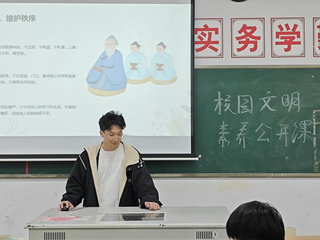 为进一步推动校园文明建设,提升学生文明礼仪素养,构建文明和谐的校园环境,机电工程学院分团委于11月18日组织开展了以“文明礼仪伴我行”为主题的文明素养公开课。本次公开课由学生会成员梁涛主讲。
