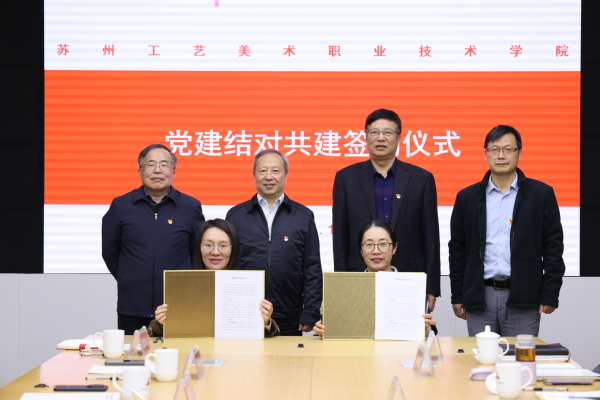 11月19日下午,学校党委前往苏州工艺美术职业技术学院举行党建结对共建签约仪式。苏州工艺美术职业技术学院党委书记范卫东、党委副书记周东华、党委宣传部部长魏钦、党政办公室主任吴昀辰、党委组织部部长张继玉,苏州高博职业学院党委书记薛辉,党委副书记、副校长徐子良,党委工作部部长许秀银等出席签约仪式。两校相关职能部门及党组织书记代表参加签约仪式。