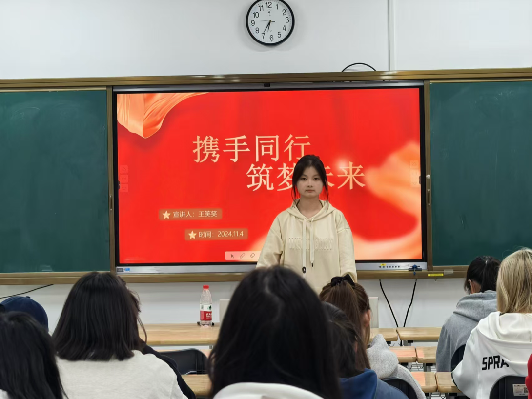 为了进一步深化校园文化氛围,提升学生的综合素质,国际商学院分团委于2024年11月4日晚上6时30分,在32-306精心组织了一场以“携手同行,筑梦未来”为主题的素养公开课。本次公开课由国商学生会主席团成员王笑笑同学担任主讲,国商2024级全体团员参与课堂。