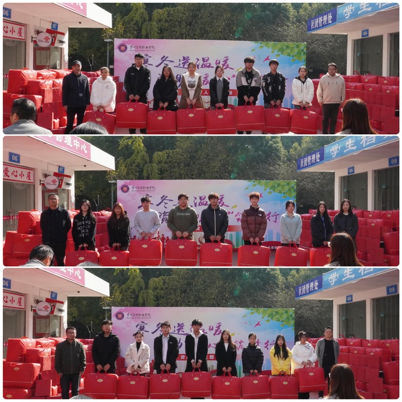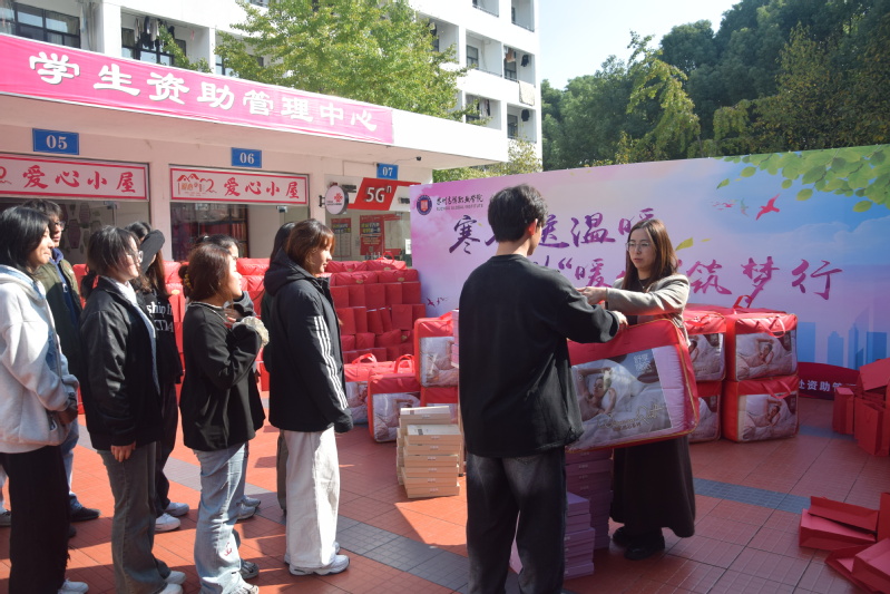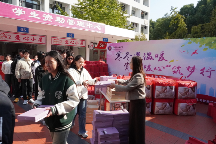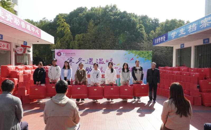 浅冬生寒意,微光暖人心。在这寒意渐浓的冬日里,我校于11月21日在爱心小屋广场开展了一场特别的“寒冬送温暖,资助‘暖心’筑梦行”资助育人主题活动。校党委副书记、副校长、校关工委常务副主任徐子良,学生工作处处长、校关工委秘书长邹艳星、学生处副处长周萍、各二级学院党总支副书记及二级学院资助负责老师为我校四百余名经济困难学生送上御寒物资,旨在让学子们在寒冷的冬日里感受到来自学校的温暖与关怀,确保每位学生都能安心求学,无后顾之忧。