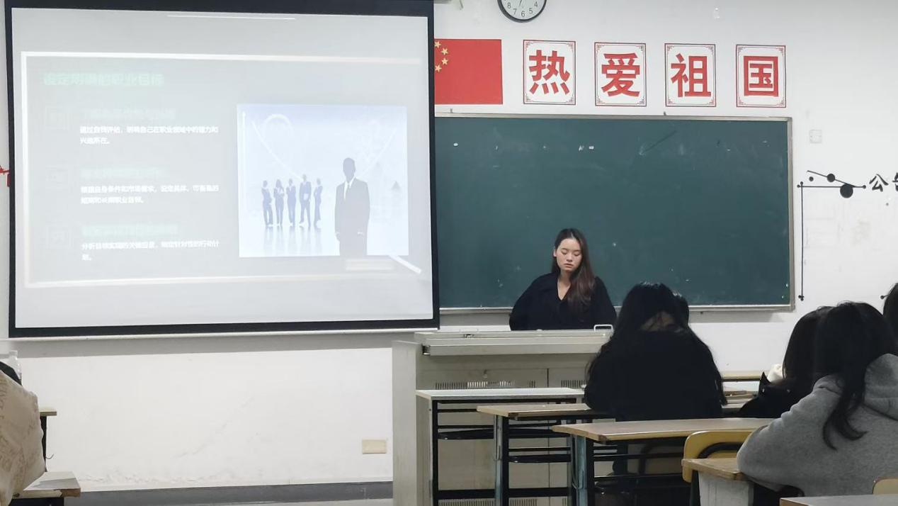 周佳怡同学首先抛出“当大家谈理想的时候,大家在干什么”这一问题让大家思考。接着向同学们讲述了自我认知的重要性,指出自我认知是个体对自己内在状态、特质、行为和情感的理解,是心理健康的基石。通过自我认知,大家能够深入了解自己的思想、情感、行为及自身的优点和缺点,进而有针对性地进行改进和提升。并结合案例,引导学生们思考自己的价值观、兴趣爱好、优势和劣势等方面,同时教授大家一些简单的自我测试方法,鼓励大家通过自我反思、心理咨询、阅读等方式,不断拓宽自己的认知边界,深入了解自己的内心世界。