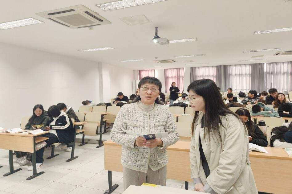 在听课环节,倪风华教授、张文远教授和贾雯教授深入课堂,随机听取了方悦老师、张颖老师和马苏苑老师《思想道德与法治》第三章“中国精神”相关内容的授课,并在课后与任课老师深入交流,与班级学生进行访谈。