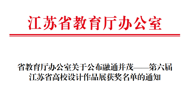 近日,由江苏省教育厅主办的融通并茂——第六届江苏省高校设计作品展公布了比赛结果。此次高校美术作品展共收到全省136所高校投稿作品9332件。经专家组评选,我校共3项作品获奖,其中二等奖2项,三等奖1项。分别是艺术与建筑学院付玲老师的作品《售楼处室内设计》和赵健顺同学的作品《运》(姚易文老师指导)获二等奖,信息与软件学院仁非凡同学的作品《匠心之轮》(孟丽老师指导)获三等奖。