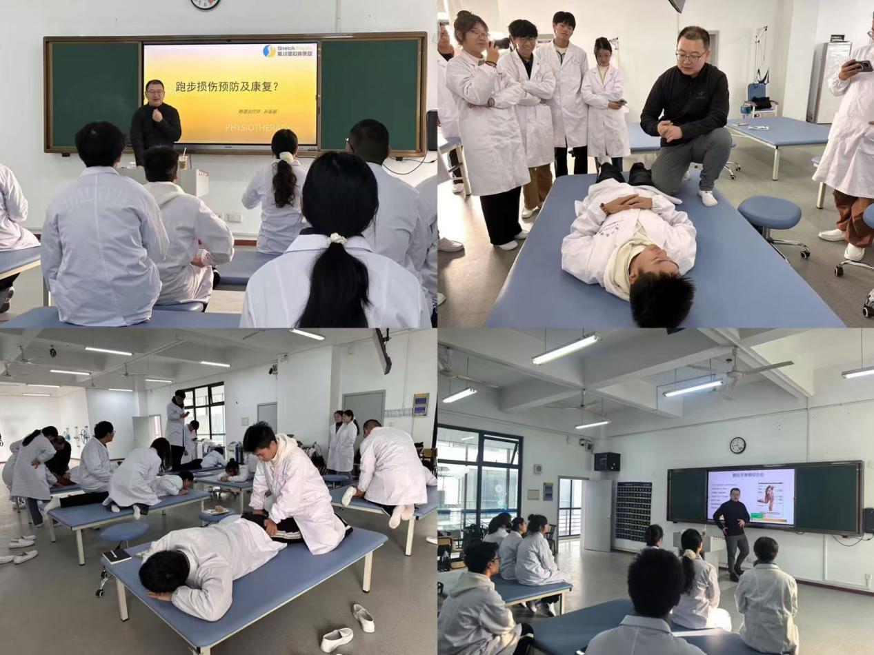 本次活动邀请到了苏州斯川驰康复创始人孙振新治疗师,他以其丰富的理论知识和实操技能,为学生带来了一场精彩的讲座,孙老师不仅详细讲解了运动损伤的发病机制和运动康复拉伸原理,还通过实操的方式为学生亲自演示常见的运动拉伸的方法,以便大家更好地理解掌握运动拉伸要领。在孙老师的指导下,学生通过认真听讲和上手操作演练,较好地掌握有关运动损伤拉伸的关键点和细节。在培训中学生相互练习和纠正不规范的操作,加深对培训内容的掌握。培训结束后,康复系教师们与孙老师进行了深入的沟通交流,旨在今后进一步加强双方在教学和实习、就业等方面的校企合作深度。