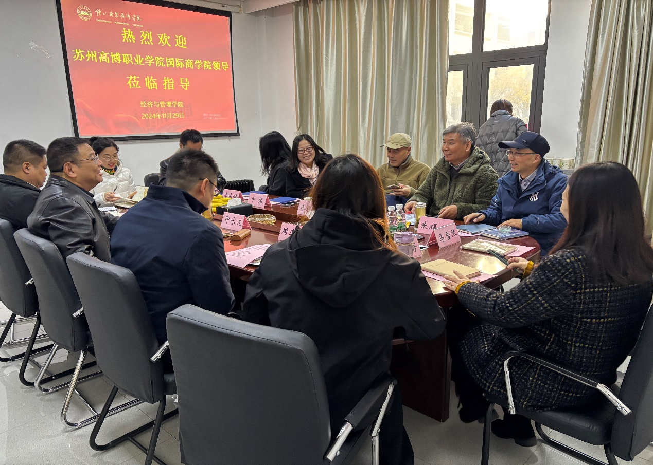 钟山职业技术学院地处南京市,办学20多年来,获得众多荣誉称号,会计与审计专业为江苏省特色专业,财经商务专业群为江苏省高等学校重点群。调研期间,我院调研团队受到了钟山职业技术学院经济与管理学院的热烈欢迎和周到接待。双方围绕专业建设、教学方法、实践教学、师资队伍建设及就业升学等方面进行了深入交流与探讨。