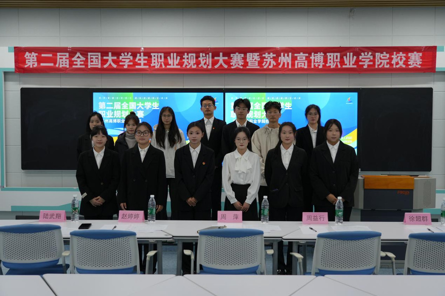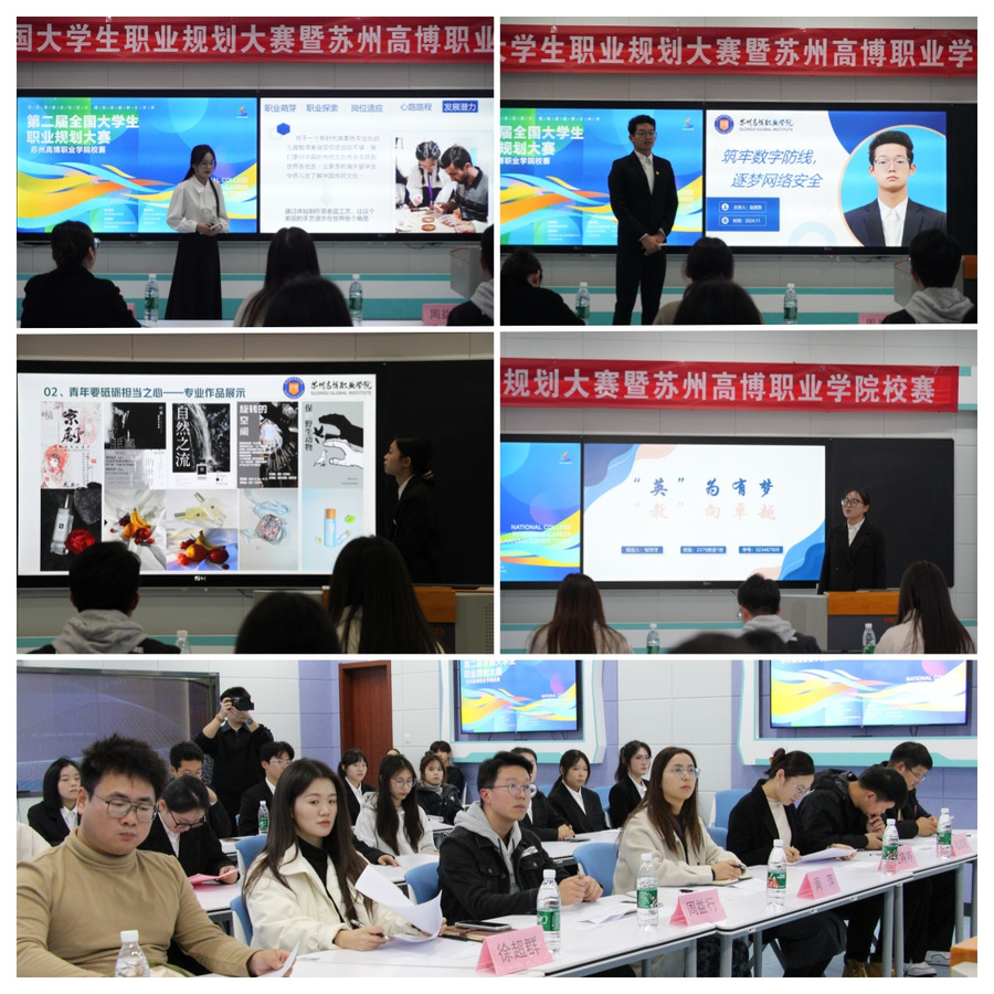 为贯彻实施教育部关于《举办第二届全国大学生职业规划大赛的通知》(教学函〔2024〕3号)要求与江苏教育厅苏教学函〔2024〕11号关于《举办江苏省第十九届大学生职业规划大赛的通知》的决策部署,加强我校学生的生涯教育和就业指导,增强大学生职业规划意识,11月27日,第二届全国大学生职业规划大赛苏州高博职业学院赛校赛在我校实训楼B301智慧教室顺利举行。学生工作处副处长周萍老师及各学院就业工作负责老师担任校赛评委,部分在校生现场观摩。