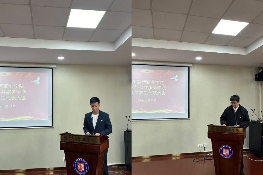 大会审议通过《关于苏州高博职业学院医学与公共服务学院第七届学生的工作报告的决议(草案)》,投票选举苏州高博职业学院医学与公共服务学院第八届学生会主席团、出席学校第八次学生代表大会代表。计票期间,由辅导员吕瑞晗和张子昕老师分别宣读了《倡议书》及《关于学生会工作人员改进服务作风的规定》。