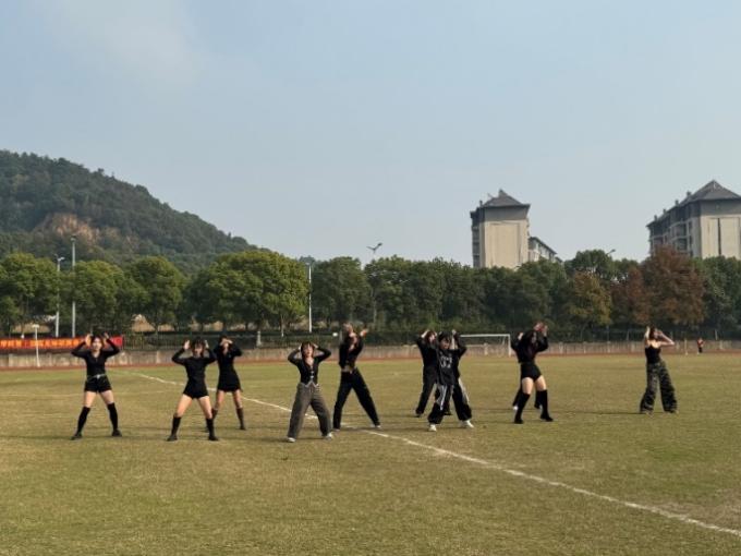 决赛前,医学与公共服务学院组织的拉拉队带来了精彩的舞蹈表演。临近比赛,球员们围成一个紧密的圆圈进行互相鼓舞士气,脸上洋溢着坚定与期待的神情。