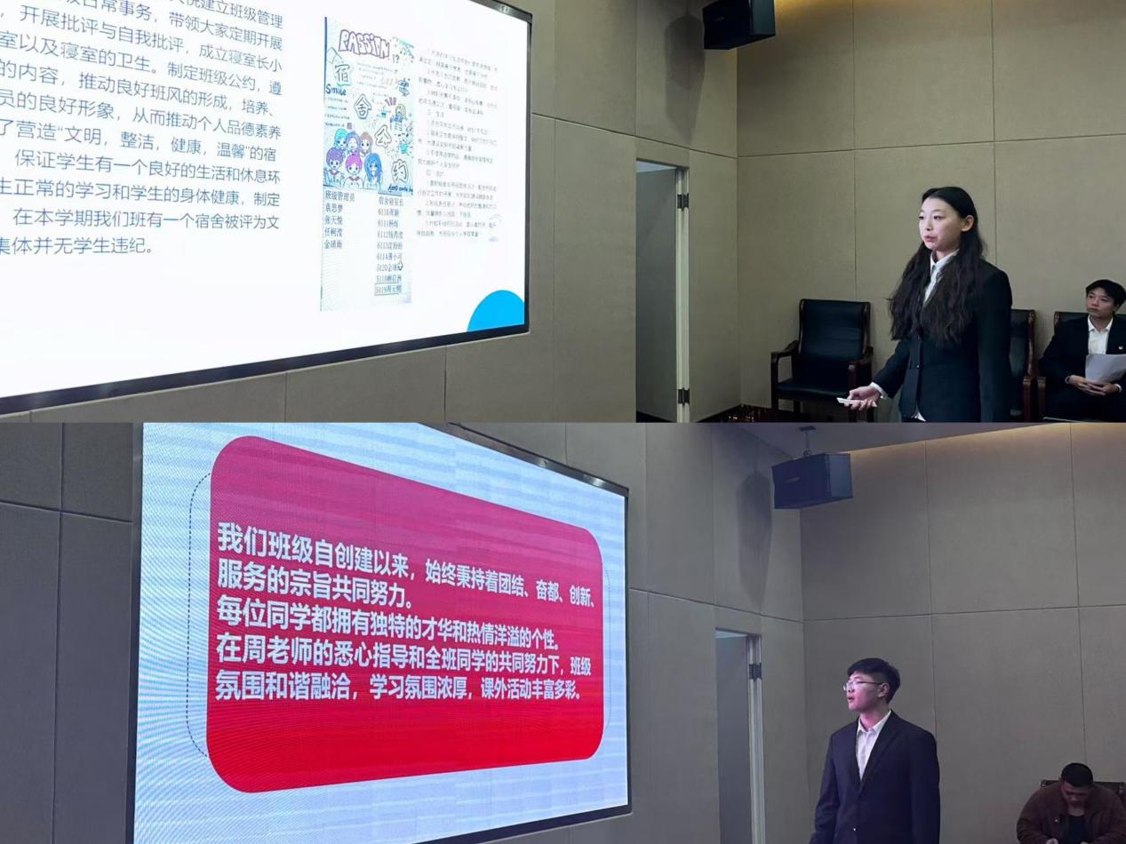 学院党总支副书记陈粟裕对各班的优异表现给予了高度评价,肯定了各班辅导员的工作和学生干部的努力。他说看到各班级在班风建设中所采取的诸多优良措施,有的班级注重培养学生的集体荣誉感和团队合作精神,通过组织丰富多彩的班级活动,增强了同学们的凝聚力和向心力;有的班级则侧重于营造积极向上的学习氛围,通过设立学习小组、开展学习竞赛等方式,激发了同学们的学习热情和求知欲望;还有的班级在规范学生行为、塑造良好品行方面下足了功夫,通过制定宿舍公约、班级规章制度、开展品德教育等举措,有效地提升了同学们的道德素养和自律能力。对于大家的工作感到非常的欣慰,同时,陈书记希望各班辅导员充分学习其他班级班风建设的优良做法,持续加强班风建设,共同营造更加和谐、积极向上的学习环境,促进学生全面发展,为学校的高质量发展贡献力量。