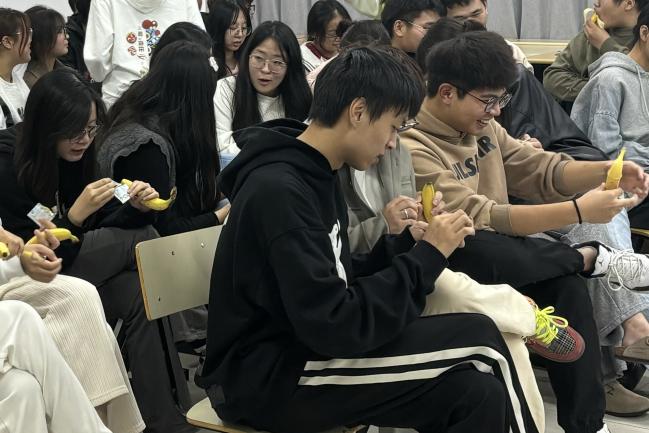 主持人教各位同学避孕套的正确佩戴方式。在专业指导下,同学们亲自动手操作,既学习了专业的避孕知识,又深化了对性健康保护重要性的理解。