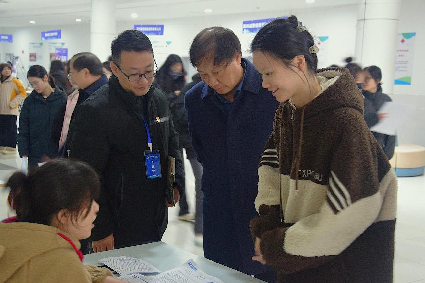 为深入贯彻落实党的二十届三中全会精神和全国教育大会精神,全力做好2025届高校毕业生就业工作,根据年度促就业工作安排部署,12月11日校就业指导中心主办,医学院承办“协同联动拓岗位·凝心聚力促就业系列活动暨苏州高博职业学院医学与公共服务学院2025届毕业生专场招聘会”,苏州高博职业学院邹学海副校长、校长特别助理医学院名誉院长薛小玲教授、学生处邹艳星处长莅临指导大会工作,本次专场招聘会促进了毕业生充分高质量就业,以及为用人单位提供高效的人才对接服务。