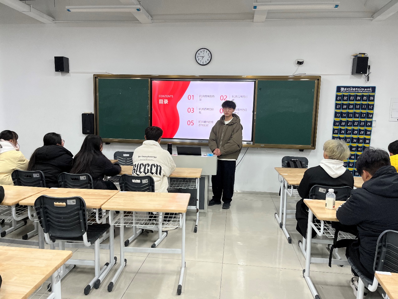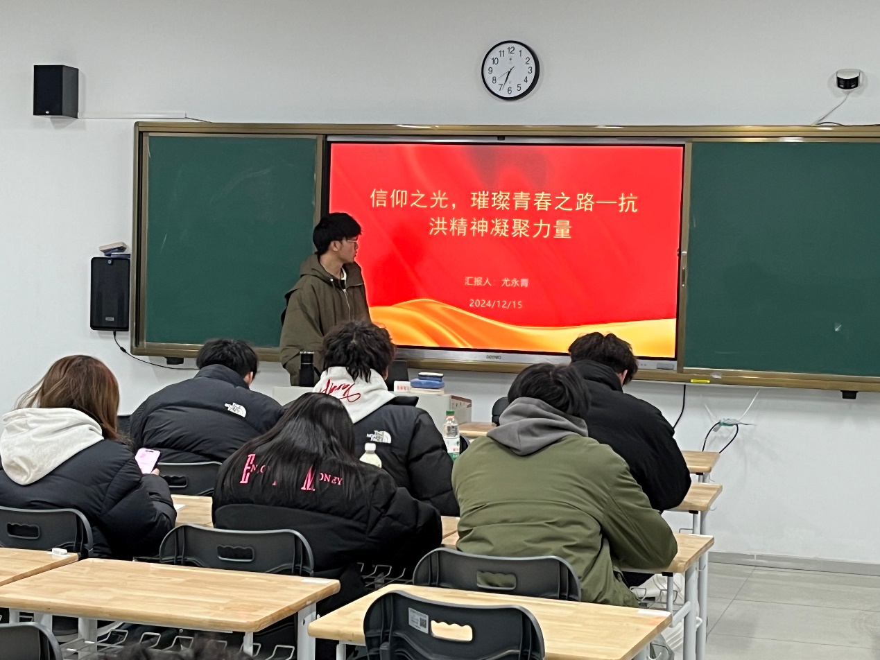 12月15日,人文社会科学学院分团委为深入践行将抗洪精神融入青年思政教育,激发莘莘学子胸怀家国、勇担使命的热忱,于校内晚自习教室开启了一场主题为“信仰之光,璀璨青春之路——抗洪精神激荡征途”的信仰公开课。此次公开课尤永青同学担纲主讲,引领学院同学回溯抗洪历史,体悟精神伟力,于沉思中明晰青春奋斗之向。
