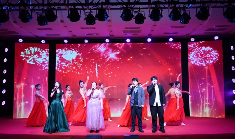 最后,歌曲《难忘今宵》将整场晚会推向高潮,张建初和徐子良两位校领导上台与师生共同演唱,全体高博师生以满腔的赤诚和热情,共同祝愿我们的高博再创新佳绩、再铸新辉煌,祝愿我们的祖国永远年轻、永远繁荣富强!本次晚会内容丰富、动静结合、高潮迭起,为全校师生献上了一场精彩绝伦的视听盛宴。