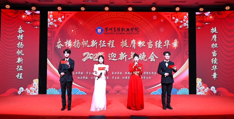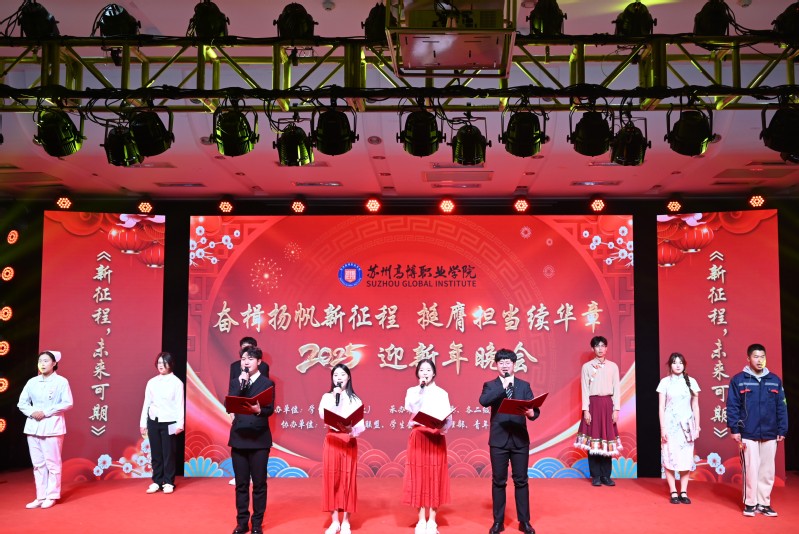 12月18日晚,学校“奋楫扬帆新征程,挺膺担当续华章”2025年迎新年晚会于实训楼报告厅隆重举行,全校师生齐聚一堂,在岁末之际,以欢歌笑语迎接新年的曙光,于温馨与欢乐中感受学校蓬勃发展的朝气与活力,携手迈向新的征程。学校常务副校长张建初,党委副书记、副校长、关工委常务副主任徐子良,校长助理黄兴以及各职能部门、各二级学院的领导和老师出席本次晚会。