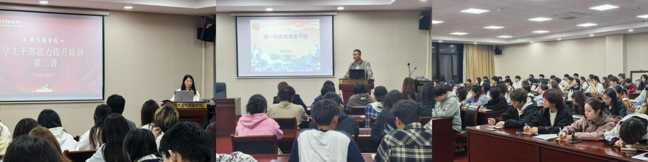 此次培训也是本学期国际商学院学生干部培训的最后一课,自10月以来,学院开展了五场面向学生会干部与班干部的专题培训,通过院校合作、系统授课、专家指导、实训锻炼,全面提升学生干部的综合素质和工作能力,致力打造一支高效、专业、富有活力的学生干部队伍。