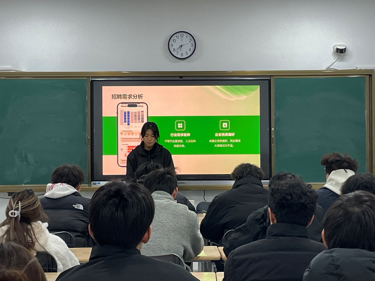 在互动交流环节,同学们热情高涨,积极主动地参与其中。大家围绕职业规划里的诸多困惑,像职业目标的确定、行业趋势的把握,以及信仰与现实的平衡难题等,展开了激烈而深入的讨论。现场气氛热烈,同学们畅所欲言,各种观点相互交织碰撞。