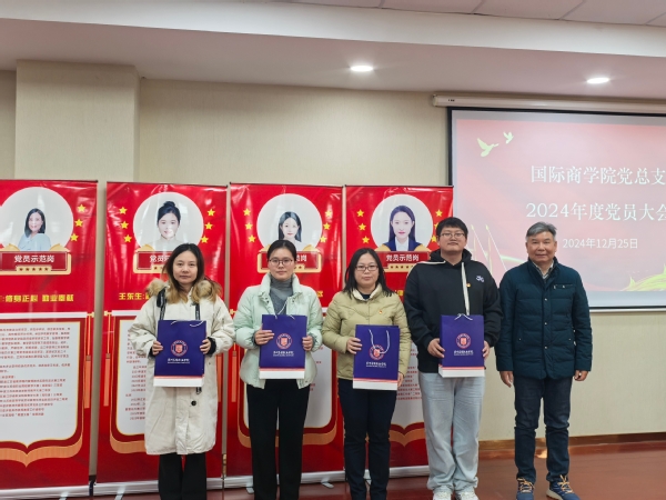 会议现场,国际商学院党总支书记王则斌为四位获得荣誉的同志颁奖。他表示,四位同志在过去的工作中展现了良好的模范作用,立足本职工作的同时带动其他同志共同进步,希望几位同志继续发扬优良传统,再接再厉,为推动学院各项事业的发展作出新的更大贡献,全体党员要积极学先进、学榜样,扎实做好各项工作,争取在明年秀出新成绩,形成新特色。