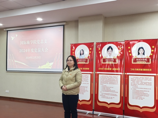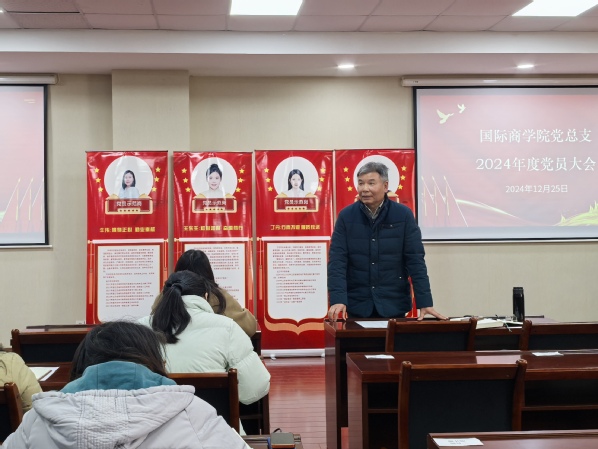 12月25日,国际商学院党总支在行政楼215会议室召开了2024年度党员大会,旨在表彰先进,加强党员队伍建设并部署下一步安排。国际商学院党总支全体党员参加会议,会议由党总支副书记张志豪主持。