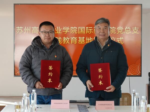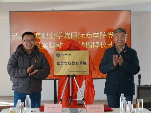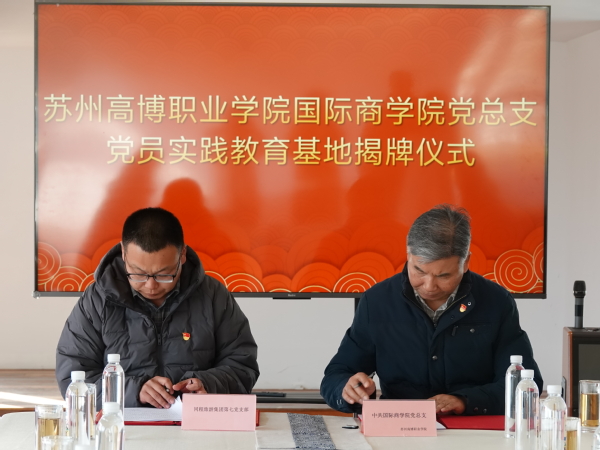 随后,双方签订了校企党建结对共建协议书,并共同为苏州高博职业学院国际商学院党总支“党员实践教育基地”揭牌。