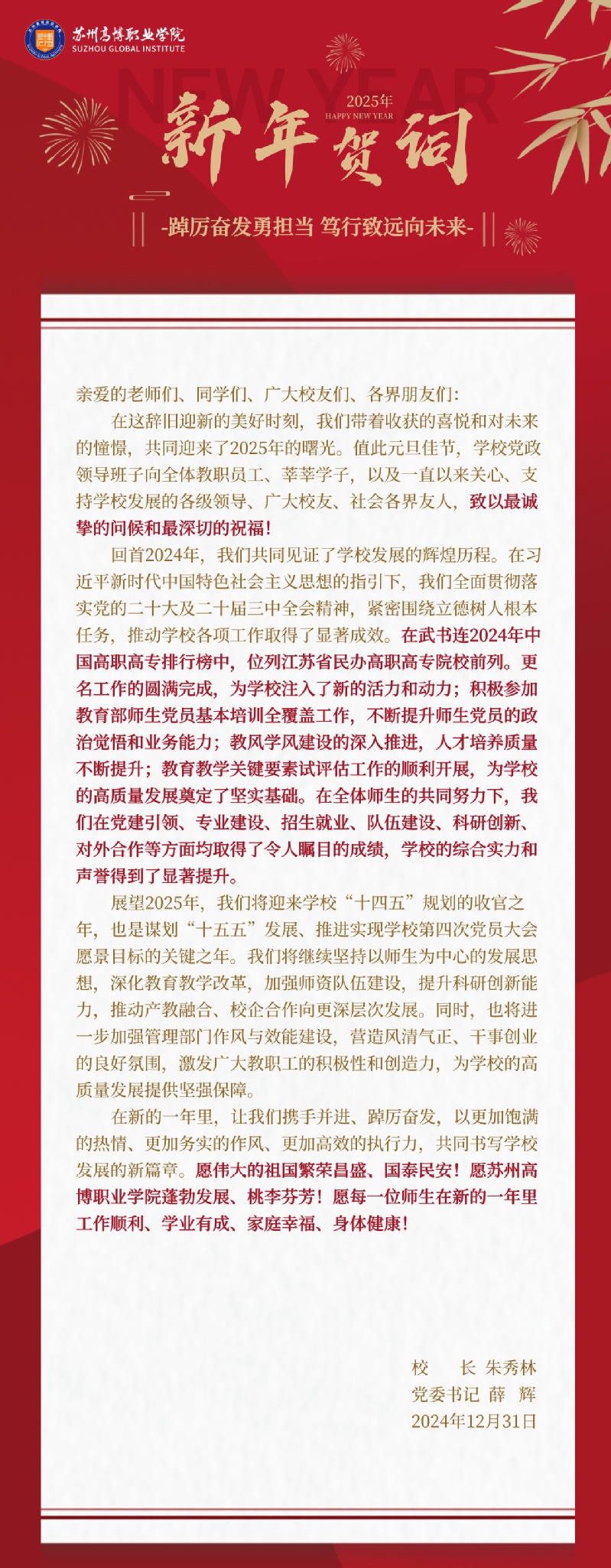 踔厉奋发勇担当 笃行致远向未来 —— 2025年新年贺词