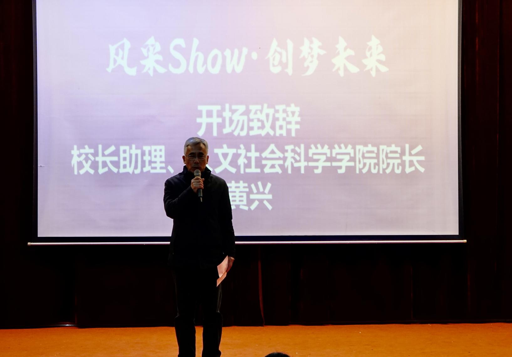 校长助理兼人文社会科学学院院长黄兴在闭幕式上致辞。他回顾了本届外语文化节期间举办的一系列精彩活动,对外语文化节组织者和所有参与者表示感谢。他指出,外语文化节为我校广大师生提供了一个宝贵的舞台,不仅展示了外语能力,更促进了跨文化交流与理解。黄兴强调,外语是认识世界、了解世界、与世界交流对话的工具和钥匙,随着中国改革开放不断深入,与世界交流交往日益频繁,外语的重要性更加突出。他鼓励同学们继续秉持学习外语的热情,努力掌握一门外语。同时,希望同学们拓宽国际视野和跨文化交流能力,为未来发展做好准备。