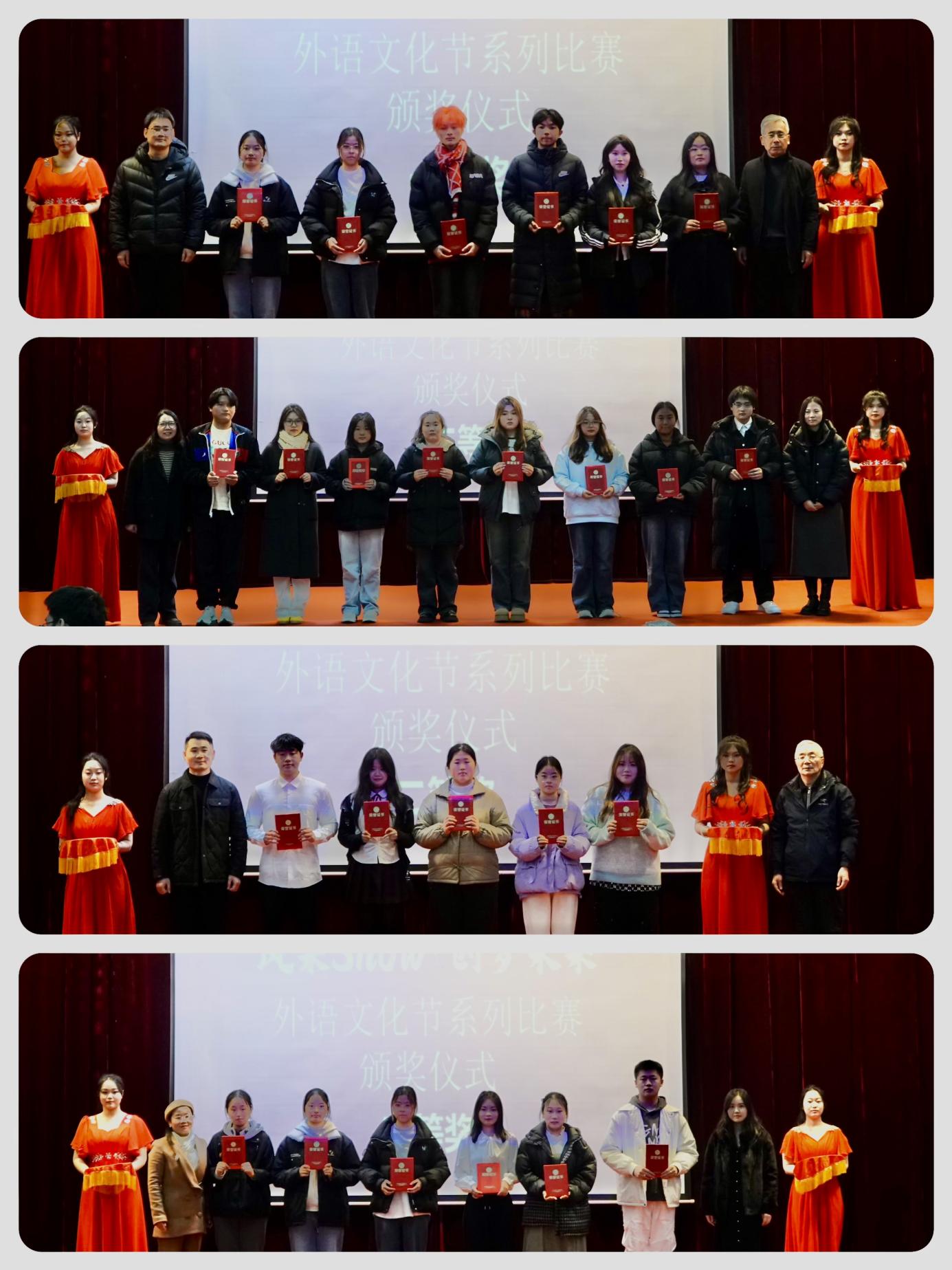 颁奖环节,参加活动的领导和嘉宾分别为在本届外语文化节外语配音朗诵比赛、外语书写大赛、英语口语比赛、Vlog英语视频大赛、外语歌曲大赛中获奖的优秀选手颁发证书,大家共同见证了这一荣耀时刻。