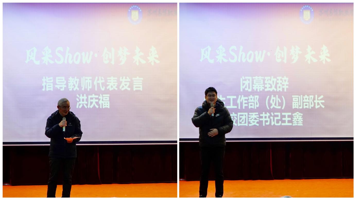 特聘教授洪庆福作为指导教师代表对本届外语文化节做了精彩点评。他高度赞扬了同学们的积极参与和精彩表现,并引经据典,倡导同学们积极参与第二课堂活动,内化文化、外化行动。他用“久旱逢甘雨,他乡遇故知,洞房花烛夜,金榜挂名时”人生四件快事生动形象地阐释了外语学习带给人们的四个境界。