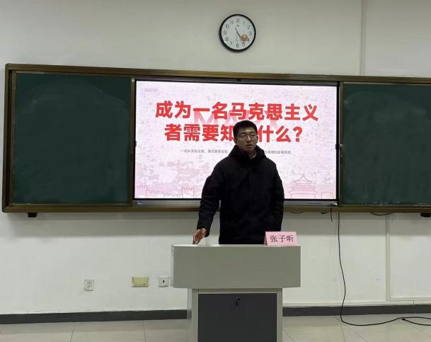 为深入学习贯彻习近平新时代中国特色社会主义思想,引导广大师生坚定马克思主义信仰,在校园厚植理想信念根基,引领广大师生坚定不移地锚定马克思主义信仰目标,医学院于2024年12月30日在12-107开展由张子昕老师主讲的以“成为一名马克思主义者需要知道什么?”为主题的信仰公开课活动,参与此次活动的有医学院分团委书记周红婕老师、辅导员吕瑞晗老师、朱嘉丽老师及全体优秀学生干部。