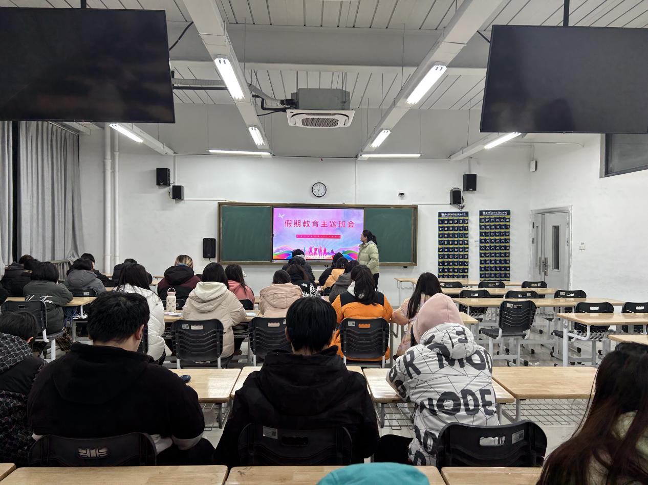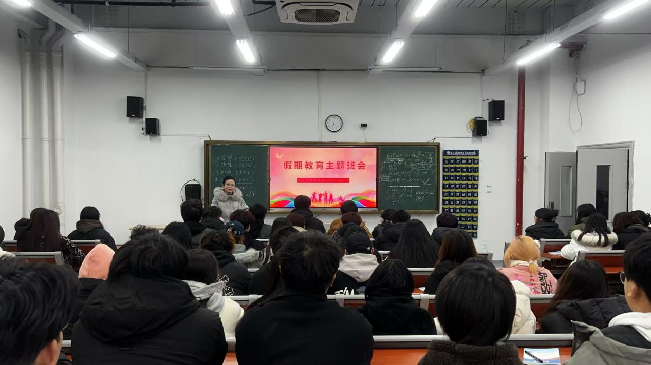 在班会中,24级辅导员韩露老师详细讲解了寒假期间可能遇到的安全隐患,包括交通安全、用电安全、防火防盗等方面,并通过实际案例进行警示教育。针对法制教育,23级辅导员孙刚老师强调了遵守法律法规的重要性,提醒学生在假期中要自觉抵制不良行为。22级辅导员王嘉琦老师则重点讲解了卫生防疫知识,提醒学生们在假期中要保持良好的个人卫生习惯,注意饮食安全,尽量避免前往人群密集的场所。此外,心理老师朱辰燕还特别强调了心理健康的重要性,鼓励学生们在假期中合理安排时间,保持积极乐观的心态,遇到心理问题时及时寻求帮助。