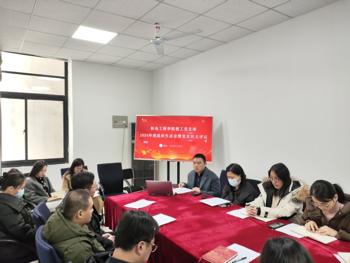 为深入学习贯彻习近平新时代中国特色社会主义思想,加强党员的教育、管理和监督,提升教师党员的党性修养,发挥党员的先锋模范作用,机电工程学院教工党支部于2025年1月7日下午在14-314会议室召开了2024年度组织生活会暨党员民主评议会。全体党员参加了会议,会议由党支部书记韩丽东同志主持。