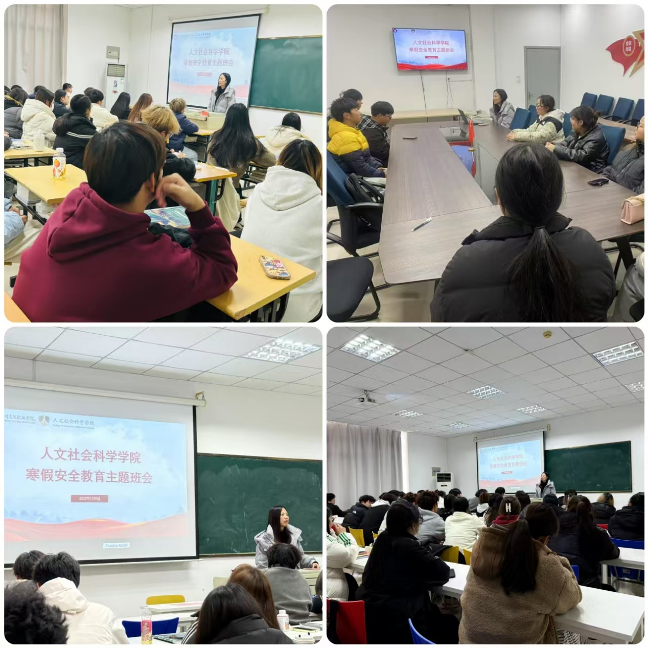 近日,为切实增强学生寒假期间的安全防范意识,确保同学们度过一个平安、愉快、充实的假期,人文社会科学学院组织各班级召开寒假安全教育主题班会,辅导员老师亲自主讲,为同学们带来一堂有意义的安全教育课。