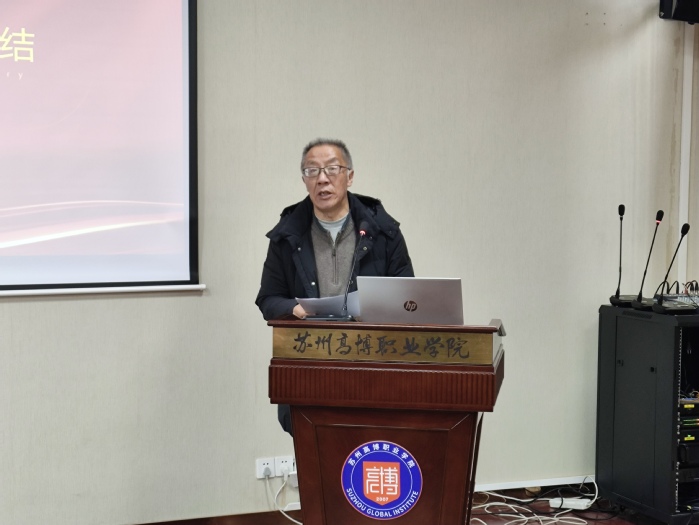 紧接着,机电工程学院副院长张茂青详细总结了学院的教学工作。他全面回顾了过去一年在课堂教学、岗位实习、专业建设等方面的丰硕成果,并认真剖析了教学工作中存在的不足与短板,提出了有针对性的改进措施。张院长强调,新的一年,全体教师要继续强化教学责任感与使命感,进一步提升教学质量,推动专业建设和课程体系的完善,培养更多具备创新能力、实践能力的高素质人才。