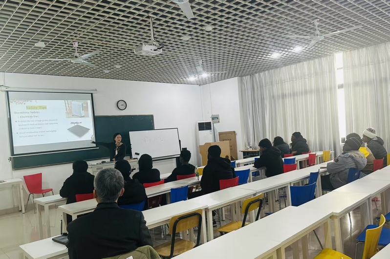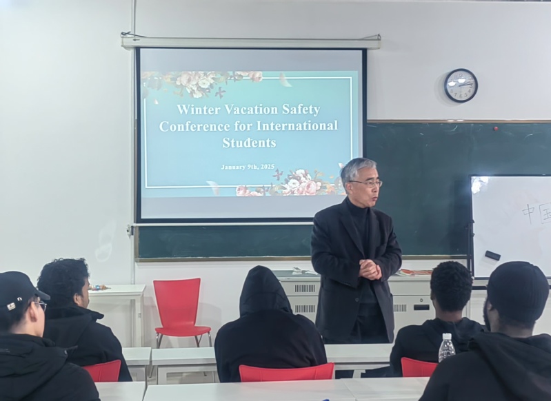 会上,国际学院教师闵蓉就寒假期间有关安全事项向留学生做了详细讲解和提醒:一是在宿舍要注意用电安全,禁止私拉乱接电线和使用大功率电器,保管好自己财物,离开宿舍要关好门窗。二是外出要遵守交通规则,选择安全可靠的交通工具,注意交通安全,避免夜间单独外出;离开苏州应履行事先报告义务,并妥善保管好个人证件。尽量少去人多拥挤的场所,并尽量佩戴口罩,注意个人卫生。三是要警惕个人信息泄露,不要随意点击不明链接或下载未知来源文件,防止网络诈骗。四是要注意合理饮食,并多开展体育锻炼。五是要保持电话畅通,遇到困难和突发情况,及时与学院老师取得联系。