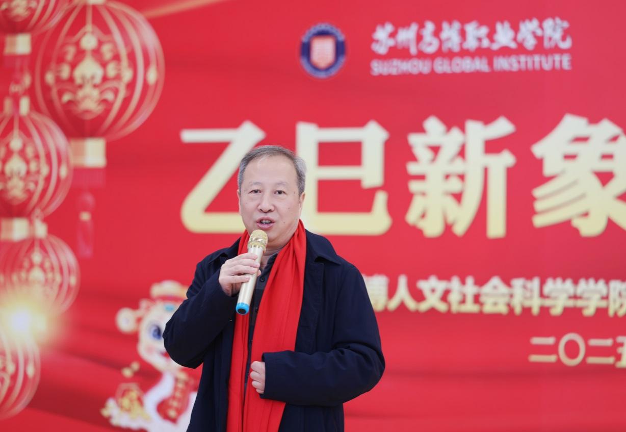 祈福环节,校长助理、学院党总支书记吴建明为全体教职员工送上新年祝福,祝福大家蛇年吉祥如意、健康快乐,并期待大家在新的一年携手共进,共创美好未来。