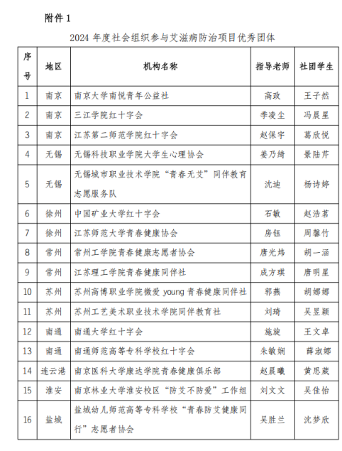 图二:2024年度江苏省社会组织参与艾滋病防治项目优秀团体