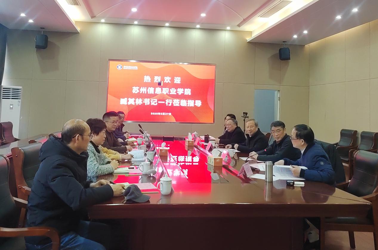 2月27日下午,苏州信息职业技术学院党委书记臧其林一行7人莅临我校指导交流。学校党委书记薛辉,常务副校长张建初,副书记、纪委书记、副校长徐子良,副校长盛惠良,教务处处长陆霞参加会议。会议由薛辉书记主持。