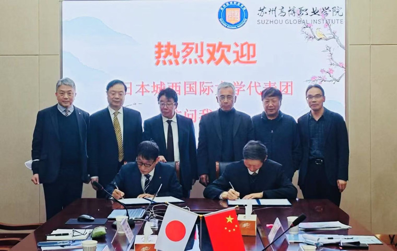 杉林坚次常务理事感谢朱校长的热情接待,并介绍了城西国际大学的办学历史、学科和专业设置以及外国留学生教育等情况。他表示,城西国际大学非常愿意与苏州高博职业学院开展校际交流,通过交流交往,拓展双方在教学、科研、学生联合培养以及校企协同发展等方面的合作。