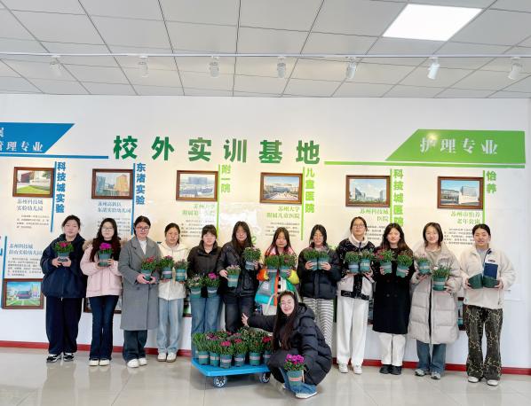 活动中,手捧鲜花的教师们,脸上的笑意比春光还要明媚。一盆绿植,一份心意,承载着学院对女性教职工的关怀与祝福,愿她们对教育事业永葆热爱,与美好相伴而行。