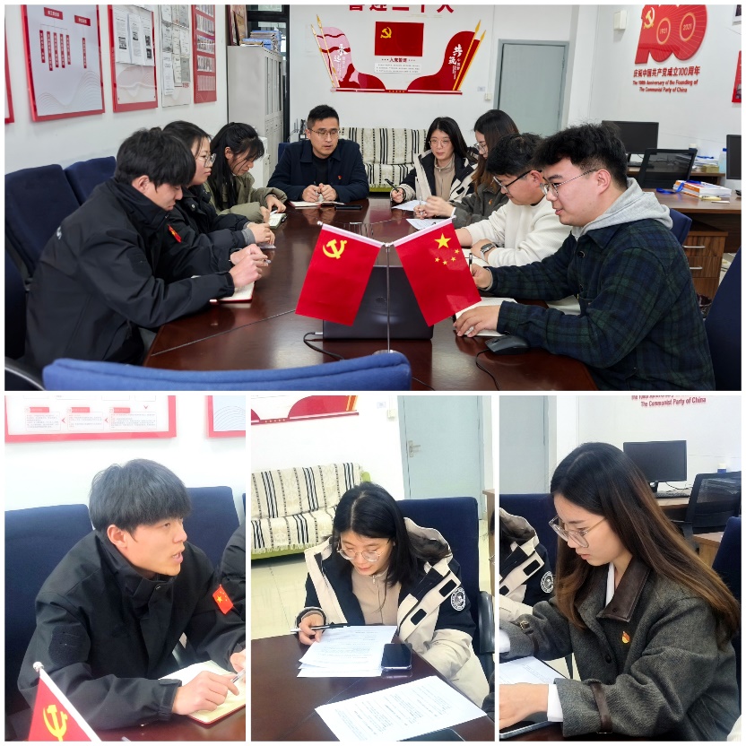 在交流环节,与会党员结合自身工作畅谈学习体会,现场气氛热烈。分团委书记姚瑶老师从习近平总书记对江苏"经济大省要挑大梁为全国发展大局作贡献"的要求谈起,认真表示:"作为教育工作者,我们要以‘争当表率’的自觉落实立德树人根本任务,将两会精神转化为学生管理上的生动实践。"辅导员葛轩琪老师则聚焦政府工作报告中"人工智能+"行动,提出"用好AI工具优化学生管理,用技术赋能思政教育创新"的工作思路。