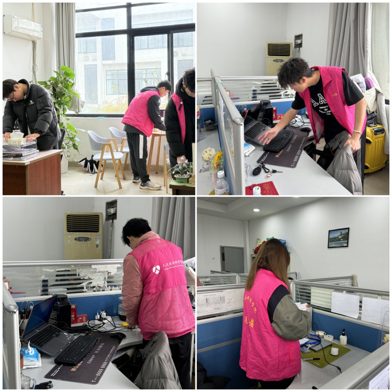 随后,志愿者们来到老师办公室。他们轻手轻脚,不打扰老师们办公,默默整理文件、擦拭桌椅、清扫地面。一位同学说:“老师们平时工作那么辛苦,我们希望通过这些小事,让他们能在更舒适的环境中工作。” 同学们热情周到的服务,赢得了老师们的一致好评。