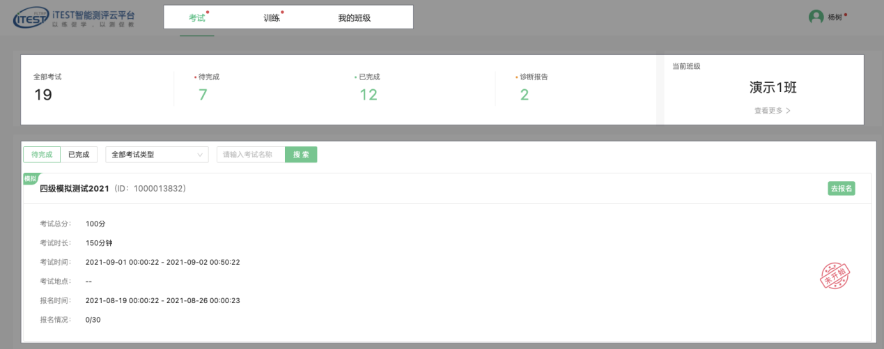 为推进信息技术与教学的深度融合,贯彻落实“以学生为中心”的理念,给学生创造自主训练通畅的环境及学习支持服务,我校决定开通iTEST 智能测评云平台电脑端口(后期会开通手机端试用)。