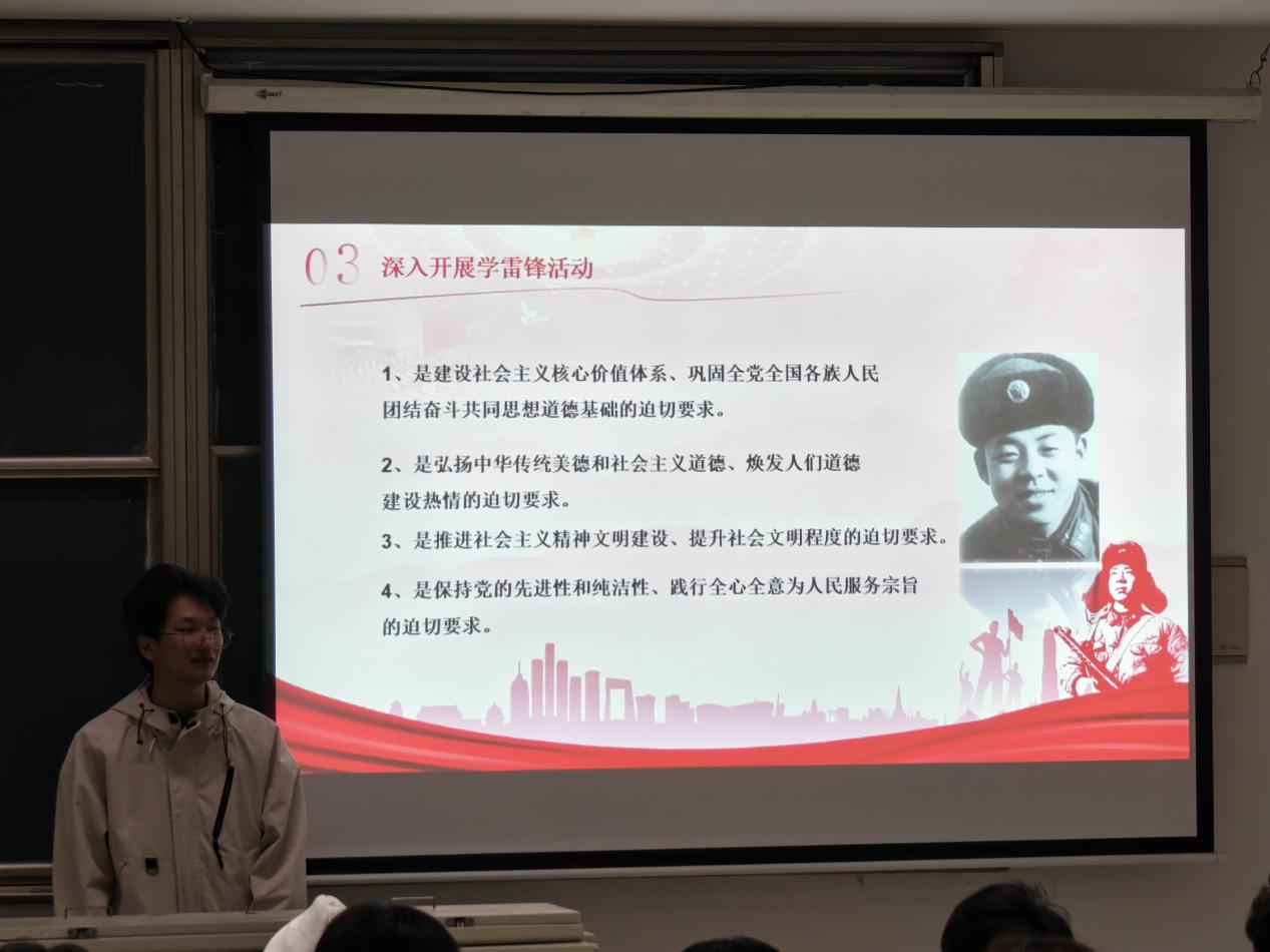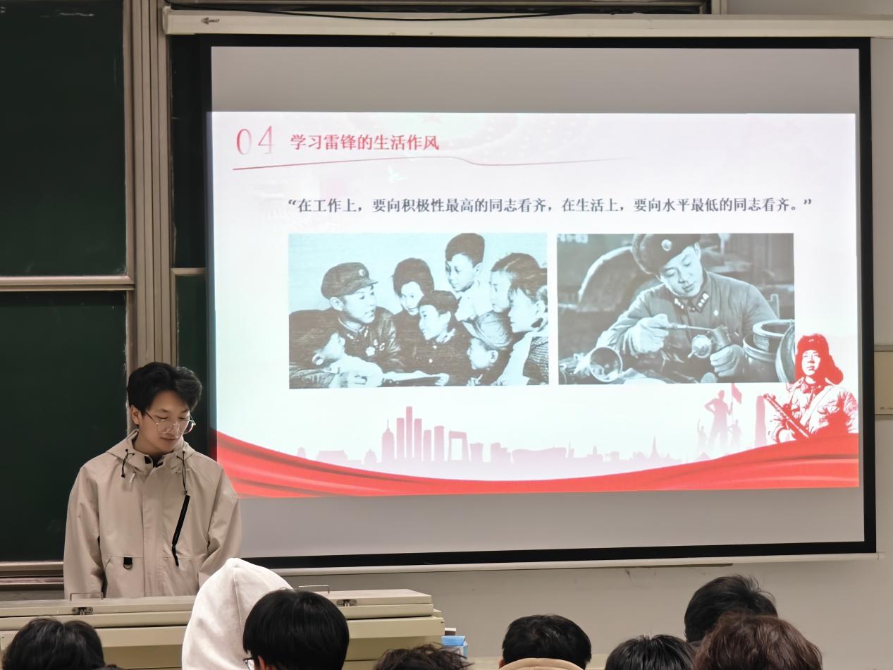 为深入学习雷锋精神,引导学生树立正确的世界观、人生观、价值观,激励青年学子在新时代的征程中,以信仰为灯,以梦想为帆,勇往直前。2025年3月17日晚8:00,在教学楼12-206,机电工程学院分团委组织开展以“学雷锋,树信仰,筑梦前行”为主题的信仰公开课。公开课由学生会干部梁涛主讲。