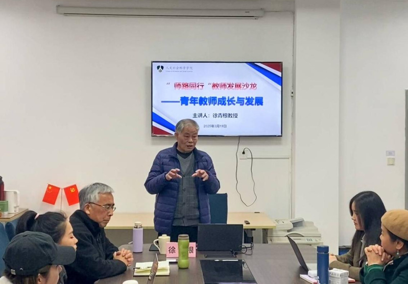 座谈会上,徐青根教授结合自己数十年执教过程中亲身经历的故事,阐述了一名合格教师应具备的素养和能力。他表示,教师首先要有爱心,要真心爱护每一位学生,并把对学生的爱和关怀融入到日常的教学工作中。要充分了解和分析学生的学习情况,善于根据学生不同的学习需求和能力制定教学计划,努力做到因材施教。徐青根认为,教学方法是否得当将直接影响教学效果,教师在课堂上要避免“一言堂”,可通过设计一些有趣的课堂活动,如小组讨论、角色扮演等,让学生在课堂上积极参与,这样既能吸引学生的课堂注意力,也能激发学生的学习兴趣和学习潜能。徐青根表示,科研是高校青年教师的核心任务,青年教师要多读书,勤思考,善钻研,不断增强科研意识、找准科研方向,提升科研能力。徐青根指出,青年教师是学校教书育人的生力军,也是学校未来发展的重要力量。要始终保持对教育事业的热爱,保持积极向上的心态,爱岗敬业,勇挑重担,为教育教学及人才培养做出应有的贡献。