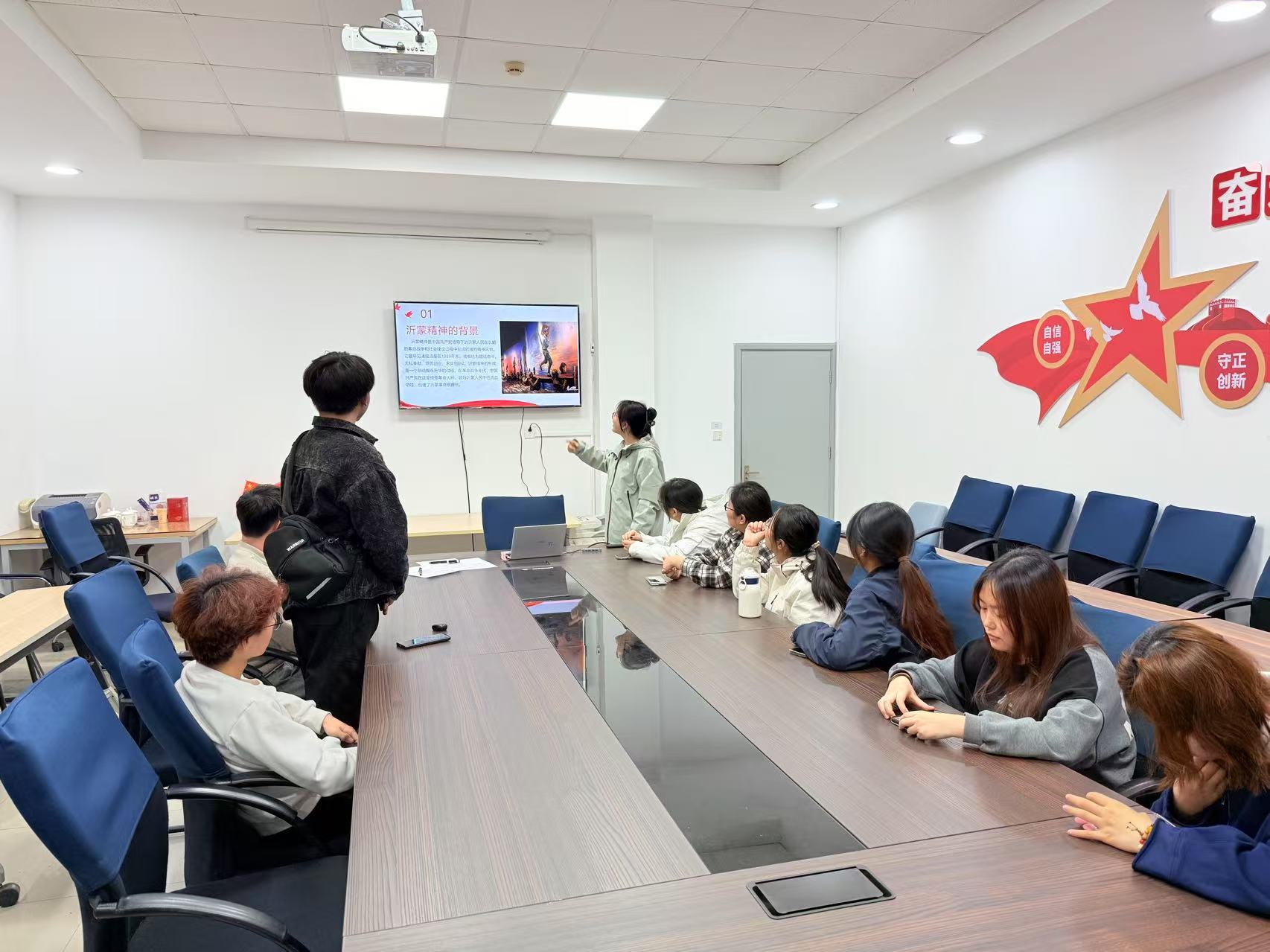 3月21日,人文社会科学学院分团委在学院会议室举办了一场以“沂蒙精神温暖人心”为主题的信仰公开课。本场公开课由邹洋洋同学担任主讲,通过历史回溯与现实观照相结合的方式,带领同学们沉浸式感受沂蒙精神的深刻内涵与时代价值。